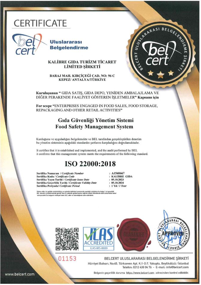 ISO 22000 Gıda Güvenliği Yönetim Sistemi Sertifikası